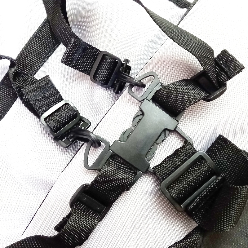 - Fixation par système tendu, accroche avec bandes velcro et zip