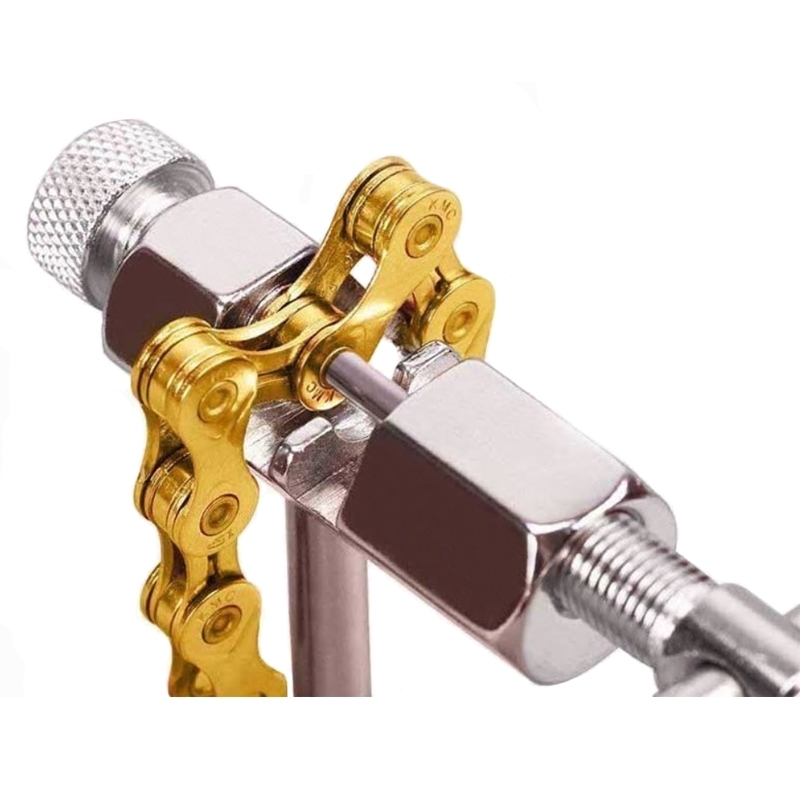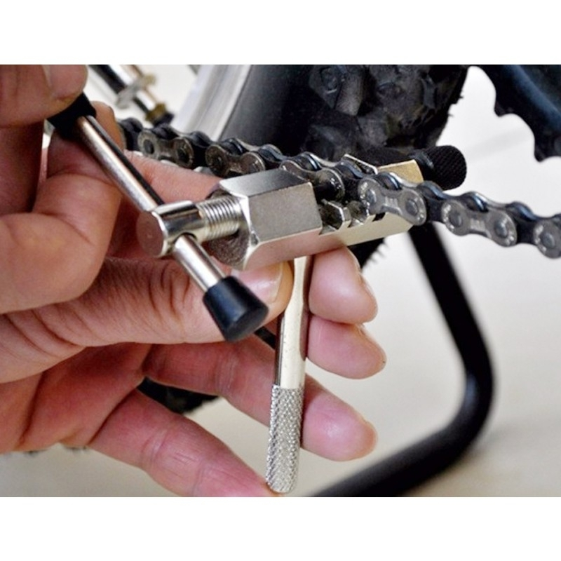 Grâce au téton de pousser du dérive chaîne vous pousser directement sur l’axe qui maintient les maillons entre eux. Cet outil est idéal quand vous souhaitez installer un maillon attache rapide, démonter une chaîne ou raccourcir ou allonger une chaîne de vélo.