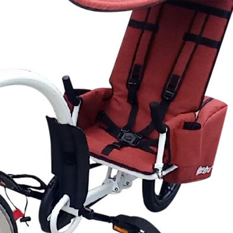 - Le siège est rembourré et dispose d’un haut dossier. Les bretelles sont 100 % confortables.